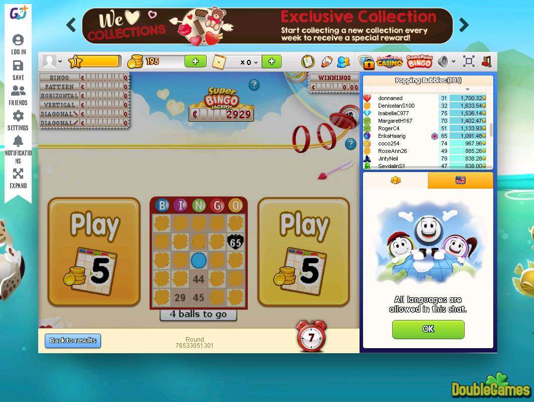 ¡Disfruta del bingo clásico! ¡Gana hasta 6 premios por tarjeta! Gana una línea horizontal, una línea vertical, una línea diagonal, un patrón o la tarjeta de BINGO completa. En GamePoint Bingo puedes jugar en salas manuales y automáticas. Las habitaciones en la lista 'manual' son para fanáticos. ¿Disfrutas estar en la cima del juego y rascar los números mientras pasa la pelota? Entonces estas salas manuales son definitivamente el lugar para ti. ¿Prefieres charlar y relajarte mientras ves rodar las bolas? Luego busca las habitaciones automáticas. En estas salas hacemos todo el scratching por ti. ¡Estar atento! Porque para hacer que nuestros juegos sean aún más divertidos, hemos agregado elementos coleccionables en nuestros cartones de bingo, ¡recójalos todos para desbloquear aún más funciones especiales!