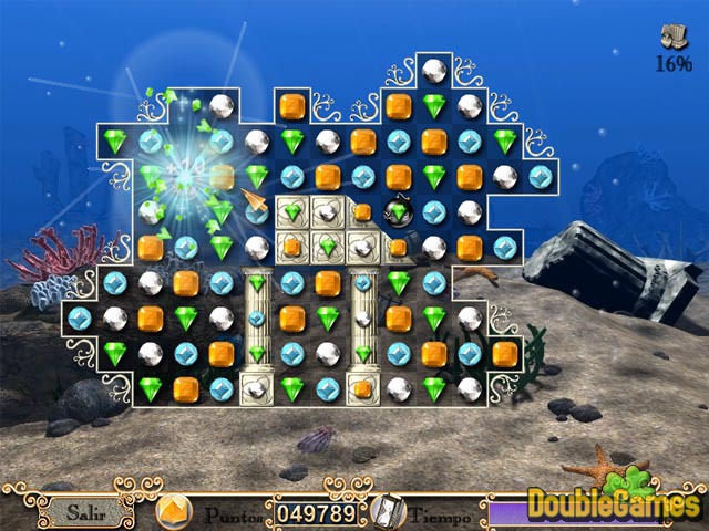 Jewel of Atlantis es un nuevo y emocionante rompecabezas de acción que combina la mecánica de hacer coincidir 3 con destrucción estilo breakout. En este juego, exploras un antiguo continente recién descubierto en busca de valiosos tesoros y reliquias. Hay un enorme mapa disponible para que lo explores con más de 100 misteriosos niveles y un número de varias carreteras y senderos para viajar. Húndete bajo el profundo mar para presenciar emocionantes aventuras en místicos lugares como un Templo Sagrado y un Volcán Hundido!
