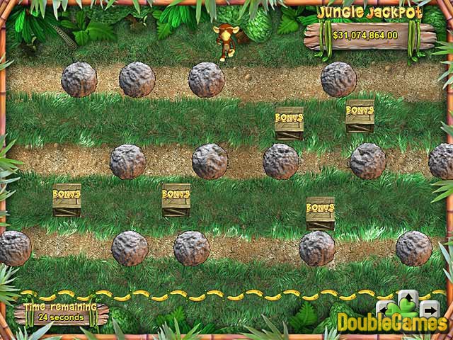Amantes de jungla, es hora de encontrar el mono atrevido y competir por premios colosales. ¡Ahora pruebe dos símbolos dispersas, y los comodines que aumentan sus premios por tres! El Mono dañoso actúa como el comodín y substituye todos los símbolos excepto mariposas dispersadas y bananas. Explore Jackpot de jungla chiflada y compita por premios en Monkey Money.