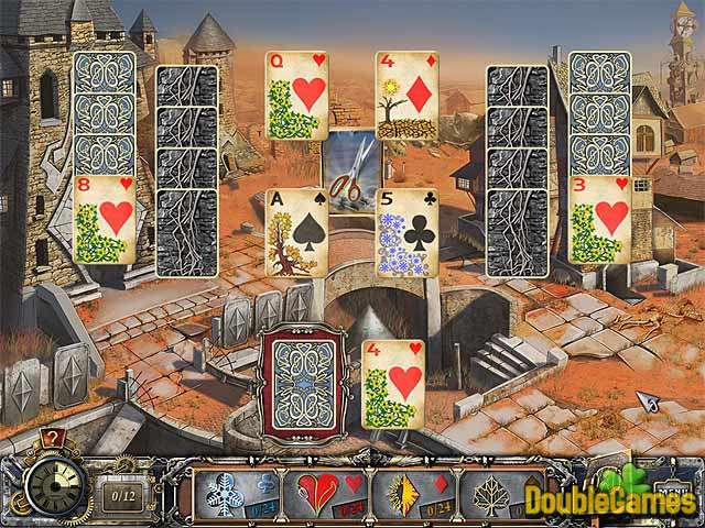 En la Ciudad de Tarjetas Mágicas, el tiempo se para todavía. Sabio y la Naturaleza de presentimiento ha impuesto una maldición como castigo para la avaricia y la avidez de los habitantes permitidos de la ciudad. Ahora, es perpetuamente otoño en el distrito lloviznoso de Palas. Los clubes son congelados en el tiempo por un invierno interminable. Los corazones han parado en el echando brotes muy de una primavera que nunca puede florecer, y los Diamantes secan en el sol muy caliente del verano. ¡Impulsar como quiera usted el reloj Mágico de la Ciudad y conseguirlo girando otra vez! ¡Pruebe disposiciones solitarias innumerables, resuelvan las docenas de enigmas extraordinarios y emocionantes, y salvo la Ciudad de Tarjetas Mágicas!